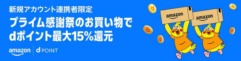 Amazonで初めてdアカウントを連携した後の買い物で 15% 分のdポイントが還元されるキャンペーンが始まりました。