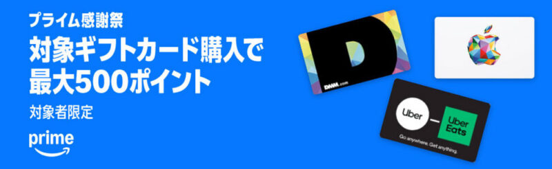 - Amazonギフトカードの初回購入で200ポイント
