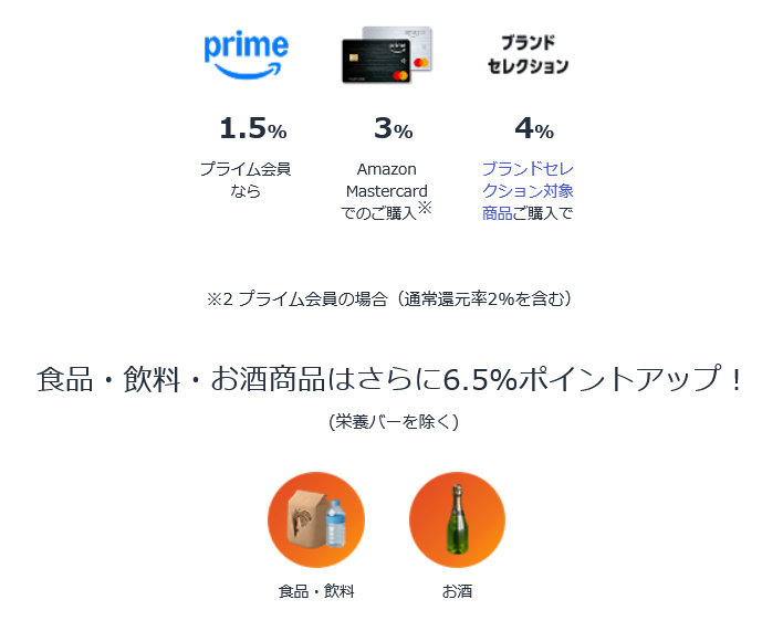 「ポイントアップキャンペーン」でプライム会員かつ Amazon MasterCard を使うと +3% 還元になりますが、ペイディでも 3% にできます。むしろペイディの方が条件が金額だけなので楽かも知れません。