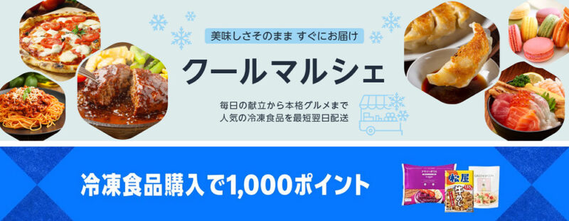 - 冷凍食品の購入で 1,000 ポイント還元 & 10%OFF