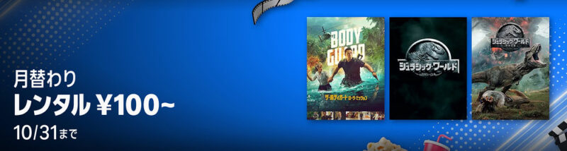 Prime Video のセールはセール一覧のページにまとまっています。「ジュラシックワールド」シリーズなどがセールされています。