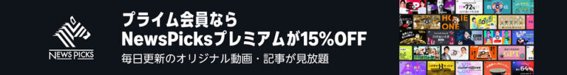 - プライム会員限定のサブスクストアで、NewsPicks が 15%OFF、ウィルスバスター10%OFF、Microsoft 365 も安く