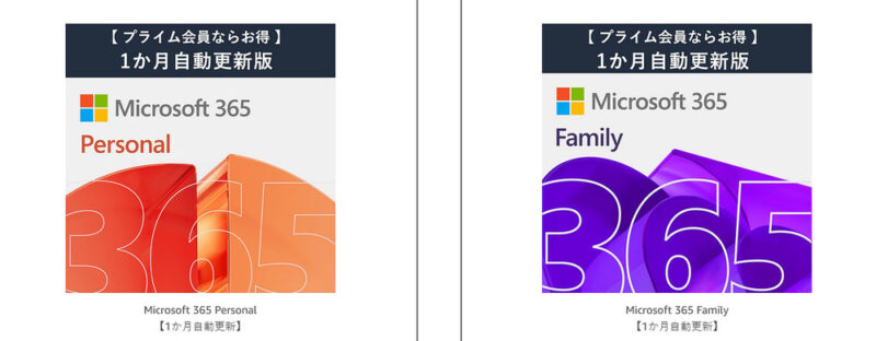 Microsoft 365 Personal/Family は年間プランが初年度12% OFF。月毎のプランだと Personal なら初月 500円、2か月目以降5%OFF になります。