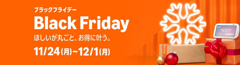 今回の「ブラックフライデー」の期間は先行セールが 11/21 から始まり、本番は 11/24 ~ 12/1 です。