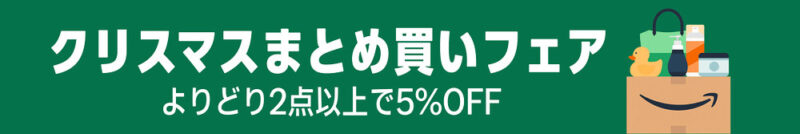 「クリスマスまとめ買いフェア」が始まっています。対象の商品を2点以上購入すると 5%OFF になります。