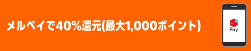 - はじめてのメルペイでのお支払いでメルカリポイント40%還元
