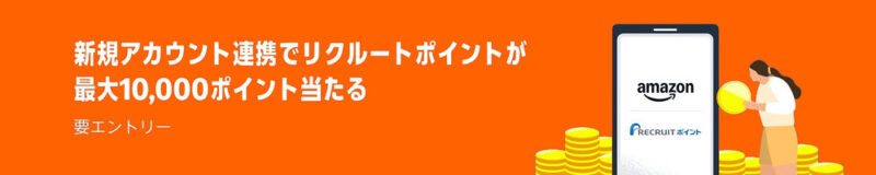 リクルートIDとAmazonのアカウントを連携すると、抽選で 10,000 ポイントが当たるキャンペーンが始まっています。
