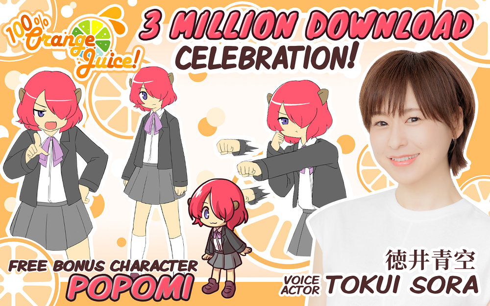今回の記念として、新キャラクター「ポポミ(CV:徳井青空)」が追加されました。