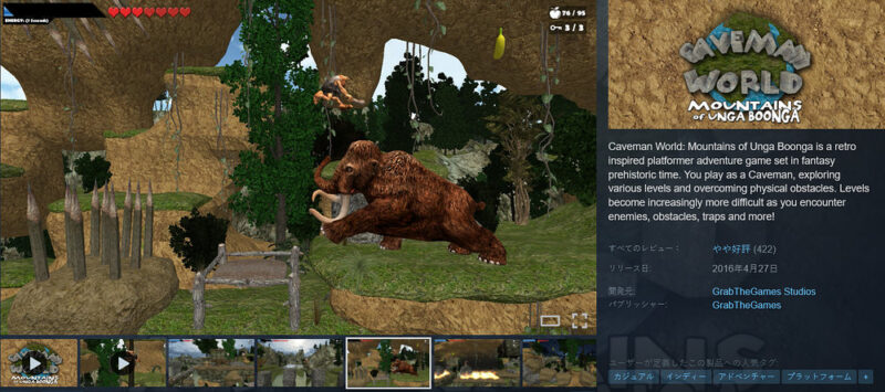 Steamにて原始人の横スクロールアクションゲーム「Caveman World: Mountains of Unga Boonga」が無料配布されています。