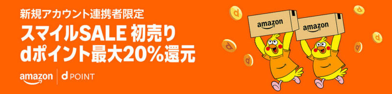 Amazonで初めてdアカウントを連携した後の買い物で 20% 分のdポイントが還元されるキャンペーンが始まっています。