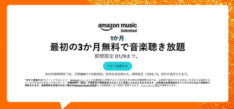 - Amazon Music Unlimited が3ヶ月無料。ファミリープランも3ヶ月無料