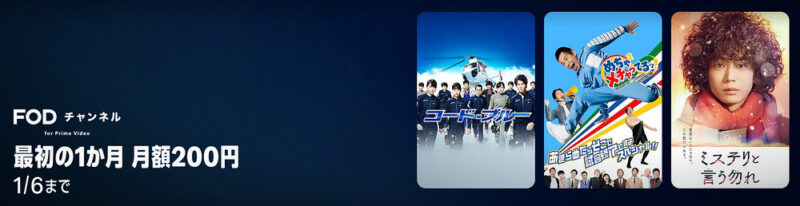 - Prime Video で FOD チャンネルが最初の1ヶ月・月額 200円に