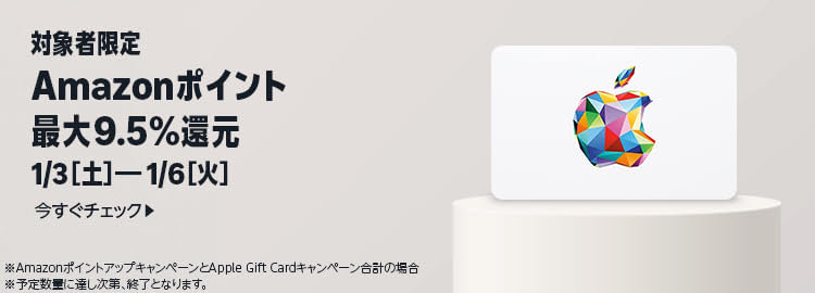 - Appleギフトカードの購入が 5% 還元。「ポイントアップキャンペーン」と合わせて最大 9.5% 還元