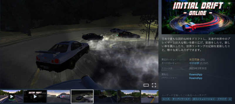 Steamにて「Initial Drift Online」が期間限定で無料配布されています。峠を車でドリフトするゲームです。MMOでセミオープンワールド。