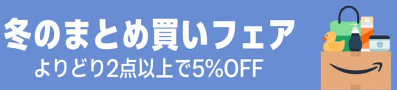 - 冬のまとめ買いフェアで、対象のものを2点以上購入すると 5%OFF