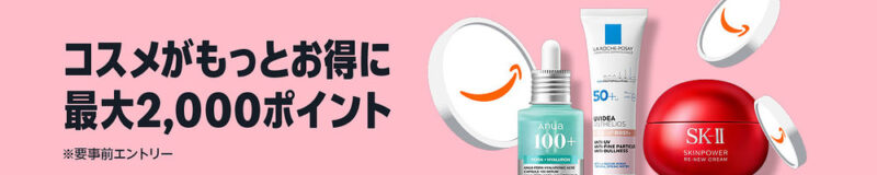 コスメの購入で最大 5% のポイントを獲得できるキャンペーンが始まっています。