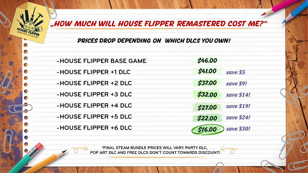 このゲームをリマスターした「House Flipper Remastered Collection」が今年発売予定です(Steamストアページ)。リマスター + 全DLC込みです。