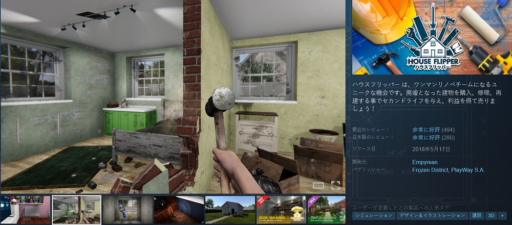 ハウスフリッパー は、ワンマンリノベチームになるユニークな機会です。廃墟となった建物を購入、修理、再建する事でセカンドライフを与え、利益を得て売りましょう!