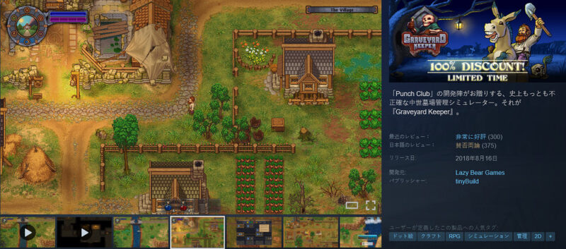 続編である「Graveyard Keeper 2」の開発が発表され、その記念として無料配布です。
