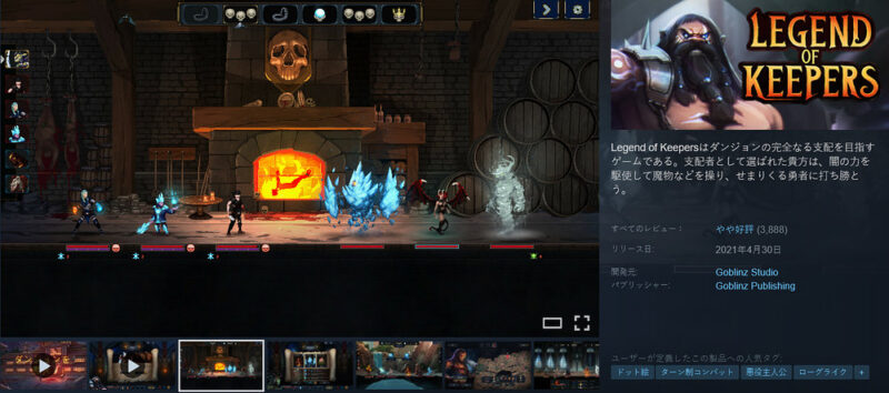 「Legend of Keepers」もこのゲームから着想を得たゲームですが、ダンジョン自体の構造をマネージメントするよりも戦闘に焦点を当てています。