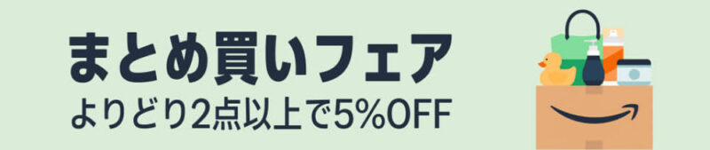「まとめ買いフェア」で、対象のものを2点以上購入すると 5%OFF