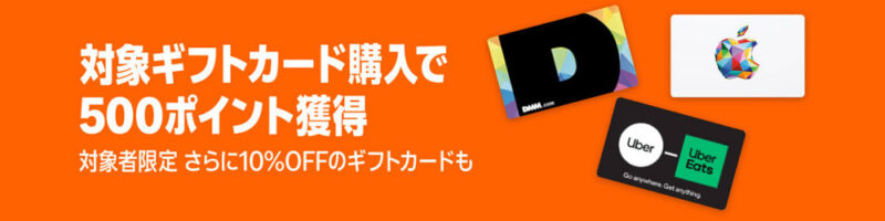- 対象の他社ギフトカード購入で 500ポイント獲得キャンペーン