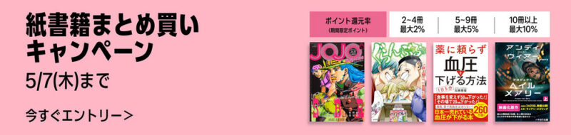 あと「まとめ買いキャンペーン」も始まっています。12冊で最大 12% 還元。