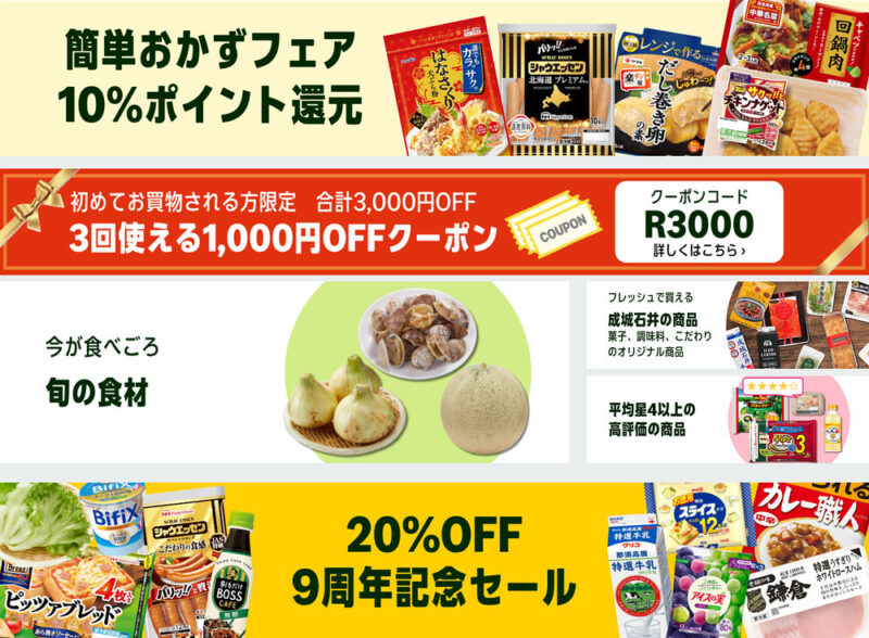 - Amazonネットスーパーで色々なセール。初めての人は 3回使える 1,000円OFFクーポン