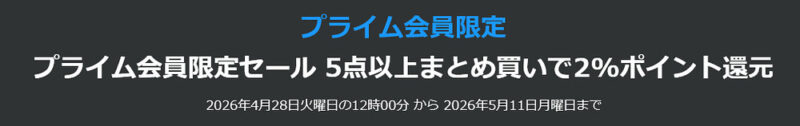 プライム会員限定で、5点以上のまとめ買いで2%ポイント還元になるキャンペーンが始まっています。